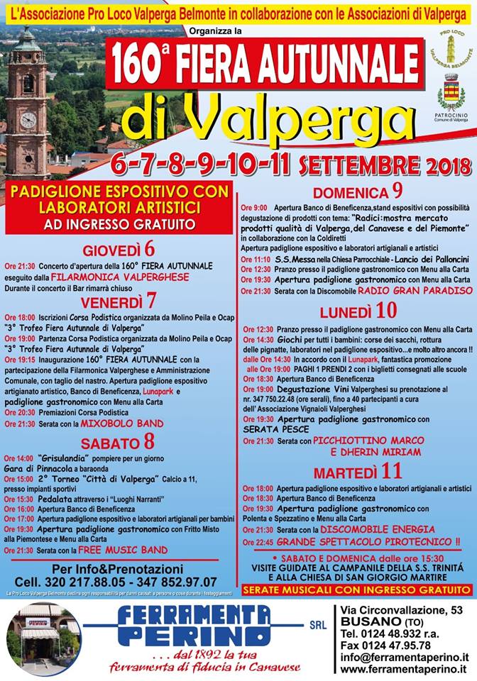 Programma della 160a Fiera Atunnale di Valperga 2018