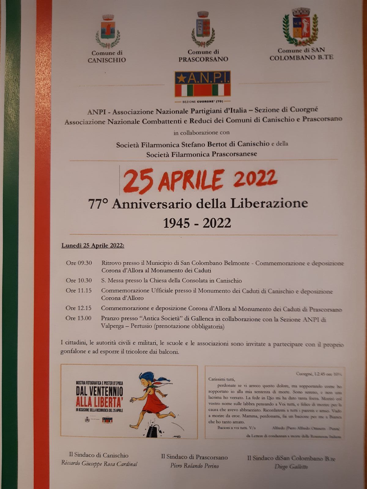 25 APRILE 2022 - 77° ANNIVERSARIO DELLA LIBERAZIONE 1945-2022