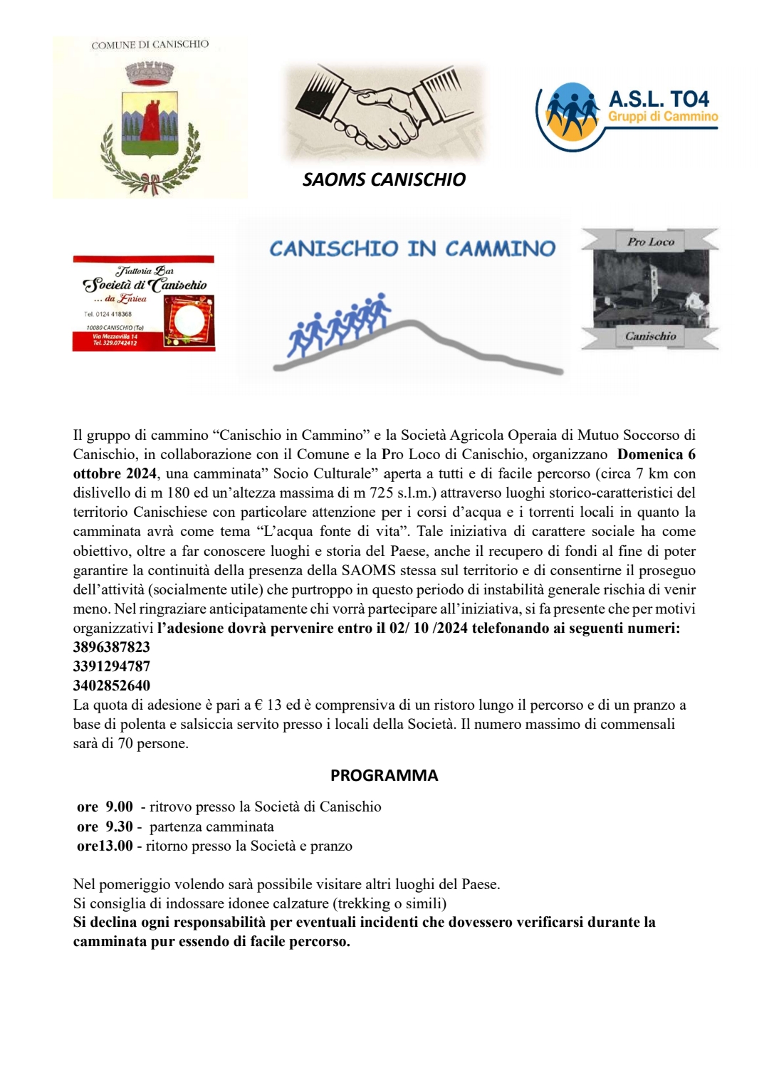 Camminata "socio culturale" aperta a tutti e di facile percorso (circa 7Km) lungo il territorio comunale, alla scoperta dei luoghi storico-artistici del Comune di Canischio.
