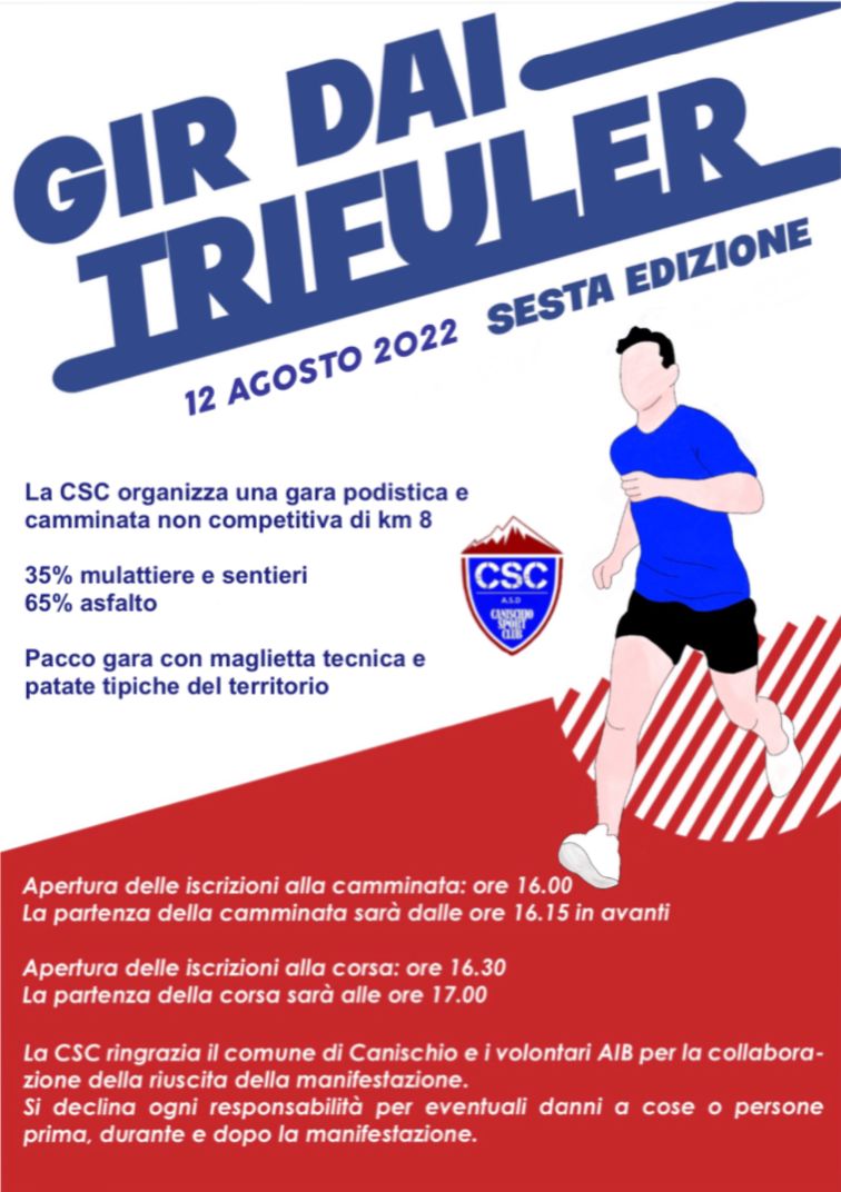 Corsa e camminata non competitiva di 8Km sul territorio canischiesi, tra sali e scendi e natura incontaminata.