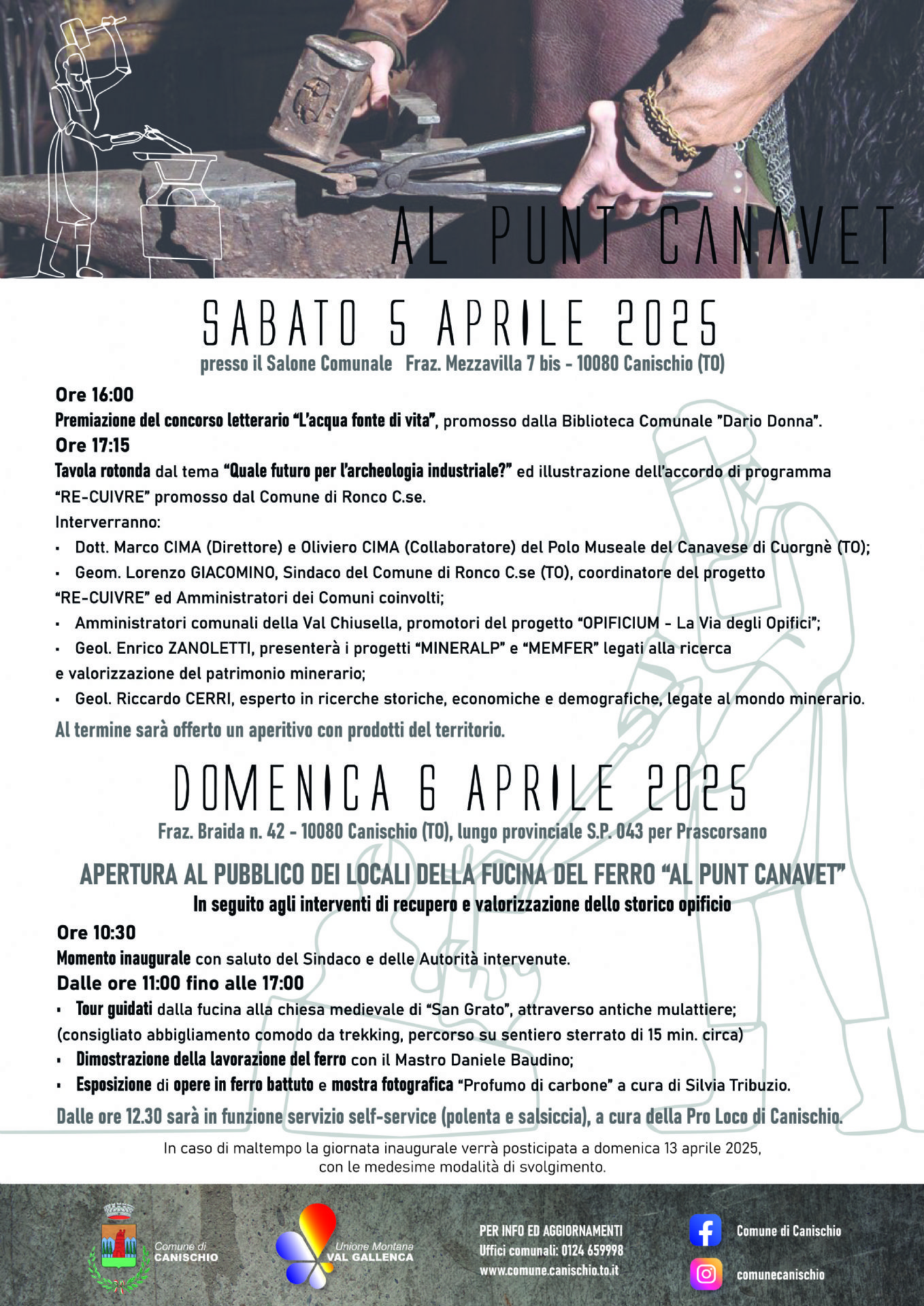 Eccovi la due giorni dedicata all'argomento della lavorazione dei metalli nella Val Gallenca. Sabato 05/04 e Domenica 6/04 Vi aspettiamo a Canischio.