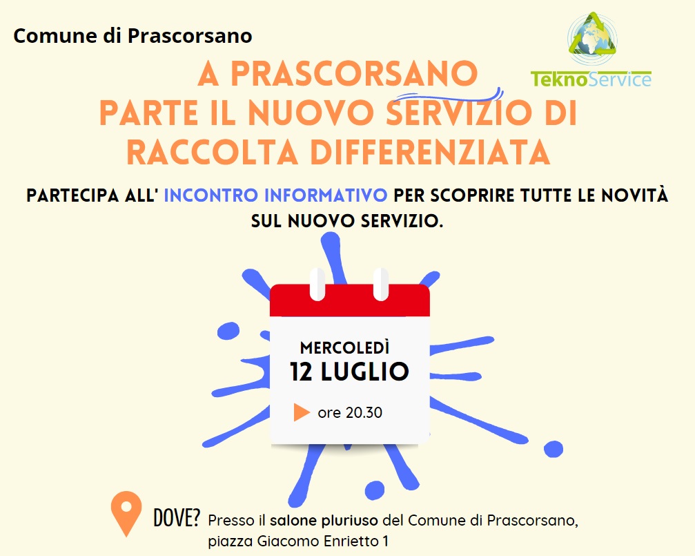 Partecipa all'incontro informativo per scoprire tutte le novità sul nuovo servizio mercoledì 12 luglio 2023 ore 20.30 presso il salone pluriuso del Comune di Prascorsano, Piazza Giacomo Enrietto N. 1