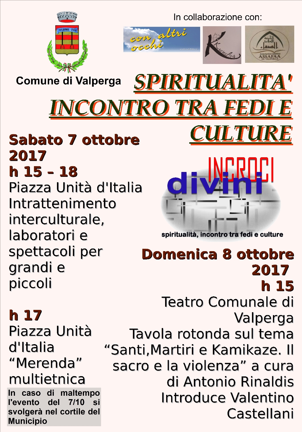 Sabato 7 e domenica 8 ottobre, "Incroci Divini", momenti di incontro interculturale e interreligioso.
