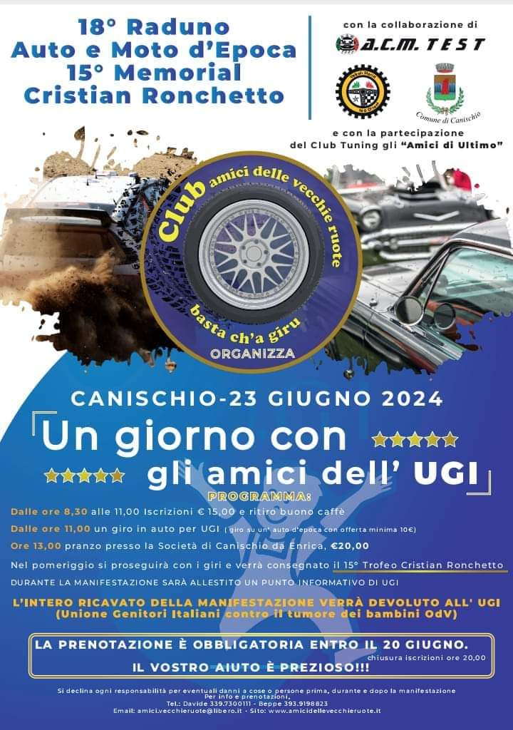 E' arrivato alla Sua diciottesima edizione il tradizionale evento a firma del CLUB "Amici delle vecchie ruote". Vi aspettiamo Domenica 23/06 a Canischio con un evento dedicato alla raccolta fondi per gli amici dell'UGI.