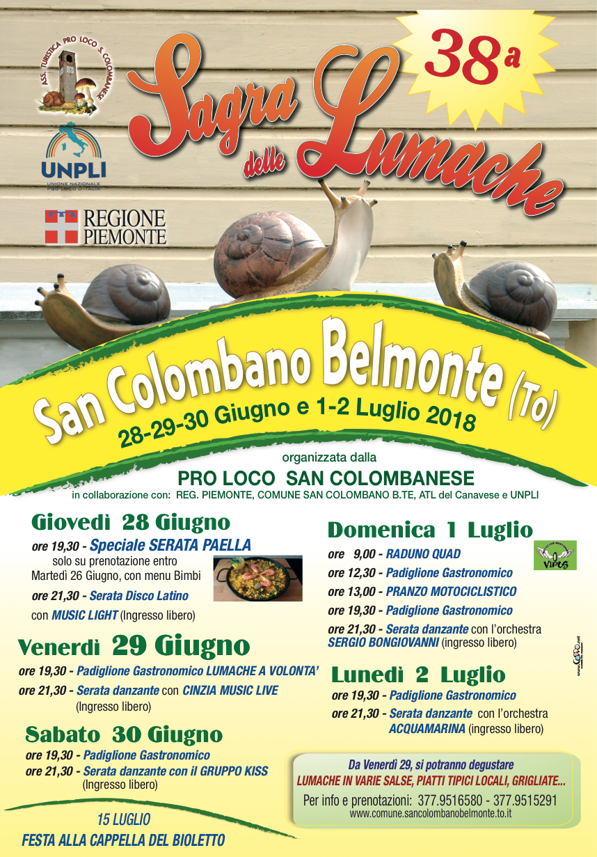 Tradizionale sagra delle lumache organizzata dalla pro loco sancolombanese giunta alla 38° edizione