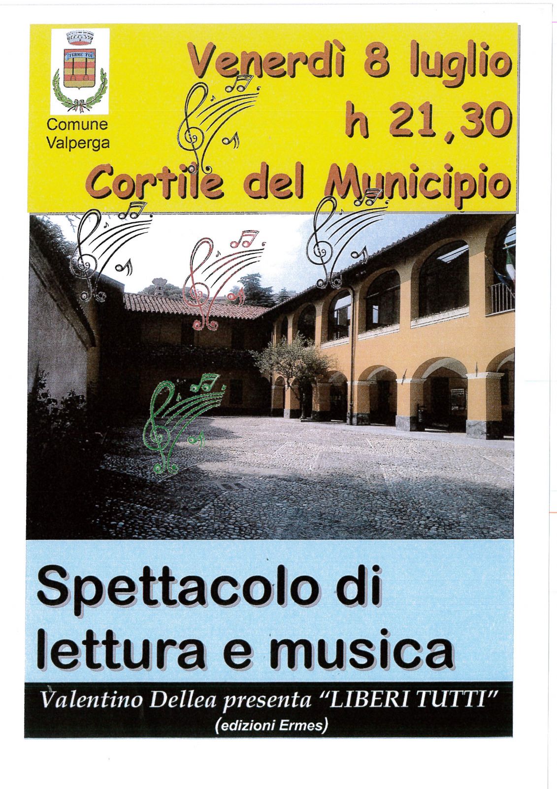 Valentino Dellea presenta "LIBERI TUTTI" - Venerdì 8 Luglio 2016 - ore 21,30 - Cortile del Municipio