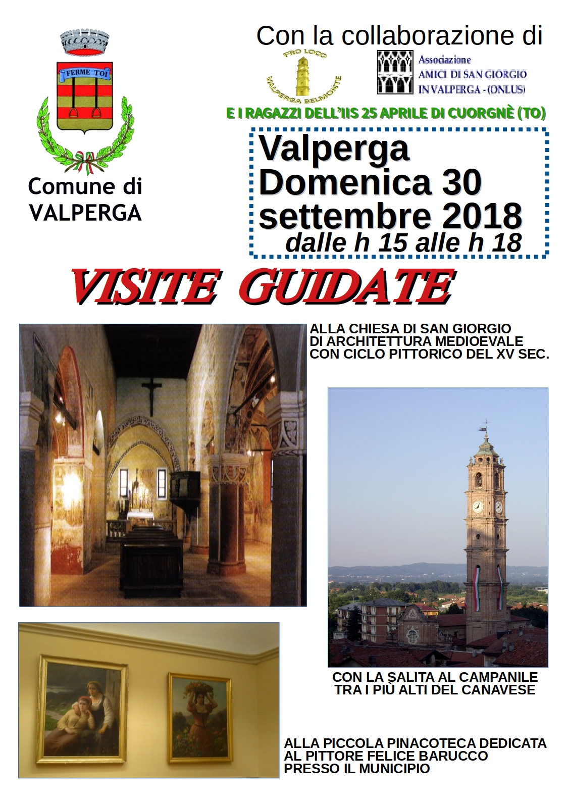 Domenica 30 settembre 2018 dalle h 15 alle h 18, visite guidate alla chiesa di san Giorgio, salita al campanile e alla pinacoteca Felice Barucco