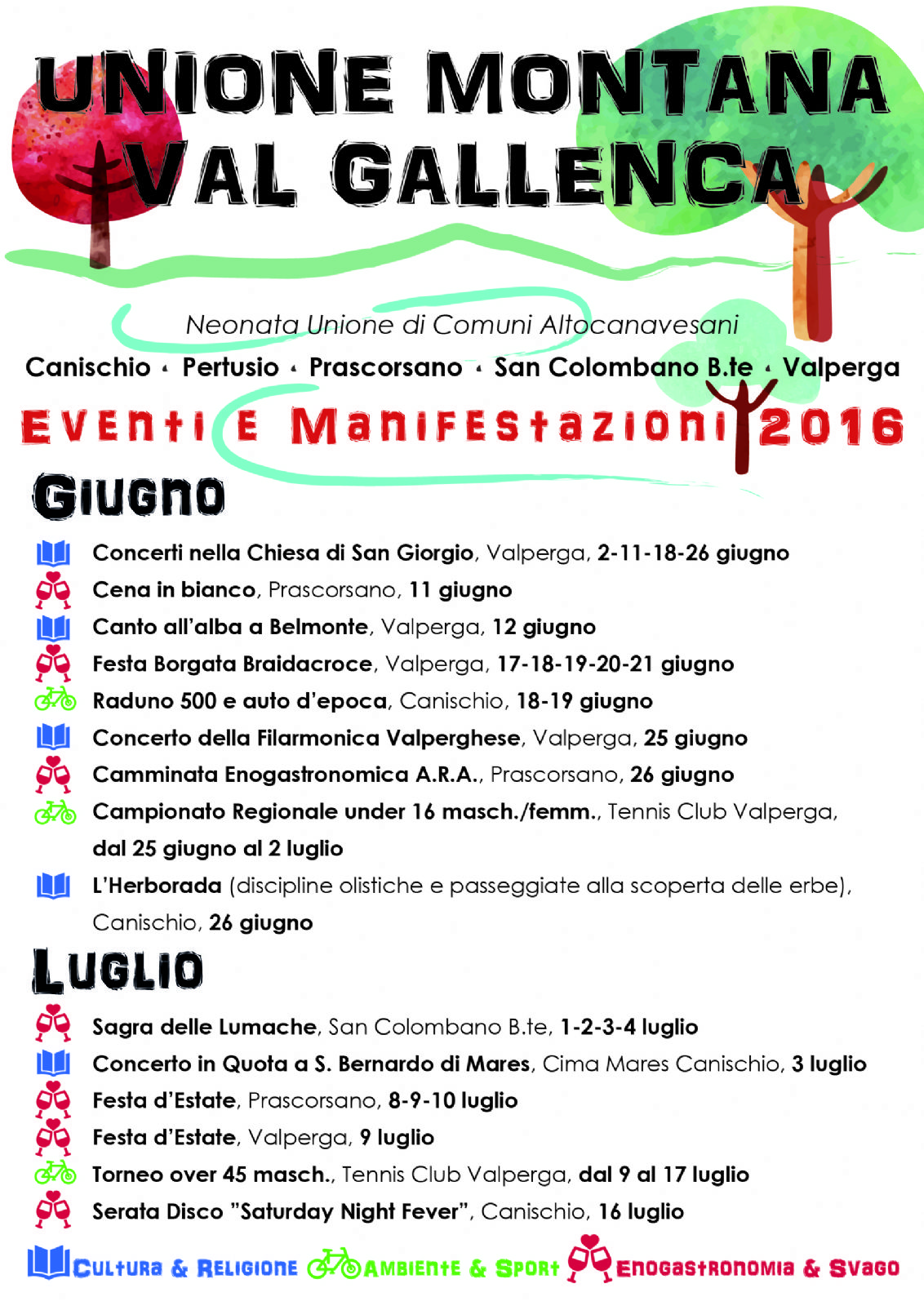 Eventi e manifestazioni 2016 presenti sui Comuni facenti parte dell'Unione Montana Della Val Gallenca.