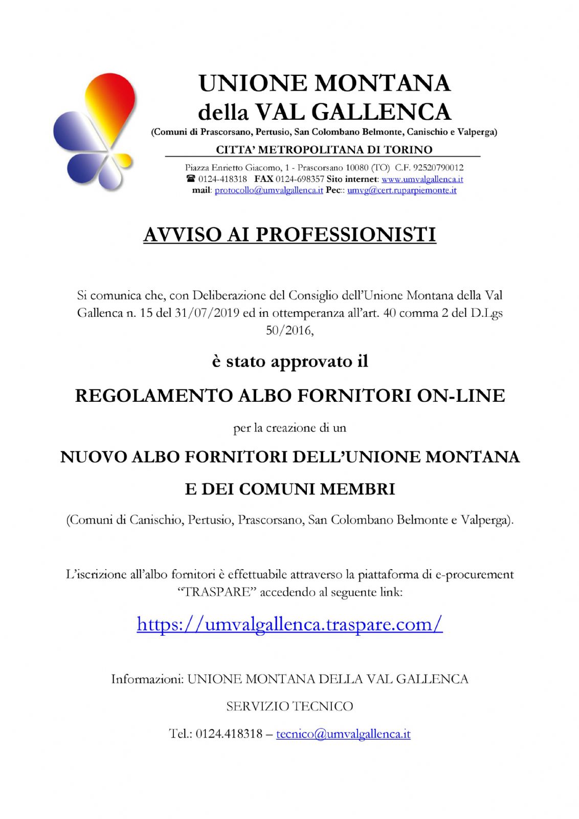 Tel.: 0124.418318 – tecnico@umvalgallenca.it