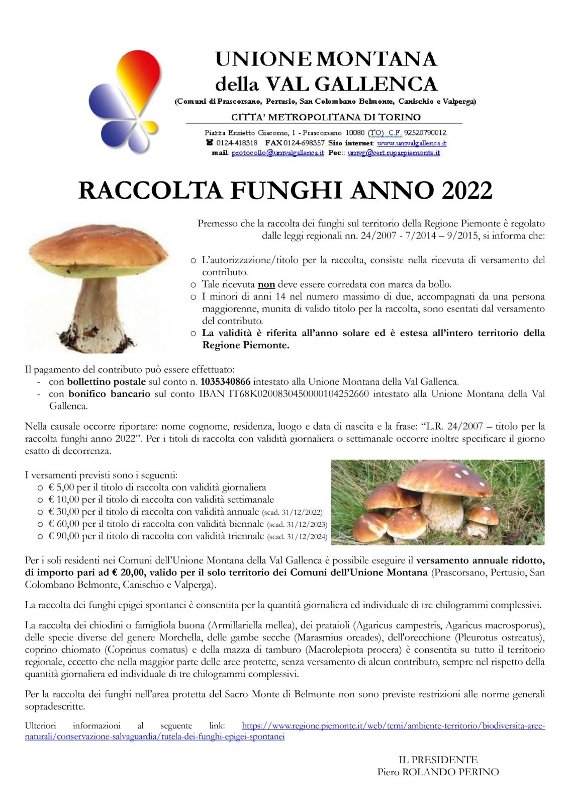 RACCOLTA FUNGHI ANNO 2022