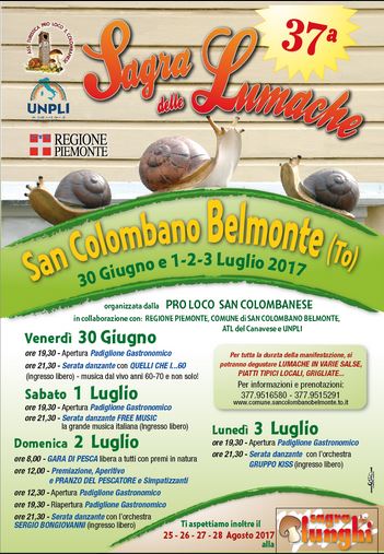 DAL 30 GIUGNO AL 03 LUGLIO 2017 LA PRO LOCO SANCOLOMBANESE ORGANIZZA LA 37° SAGRA DELLE LUMACHE - GUARDA IL PROGRAMMA - VI ASTETTIAMO NUMEROSI .