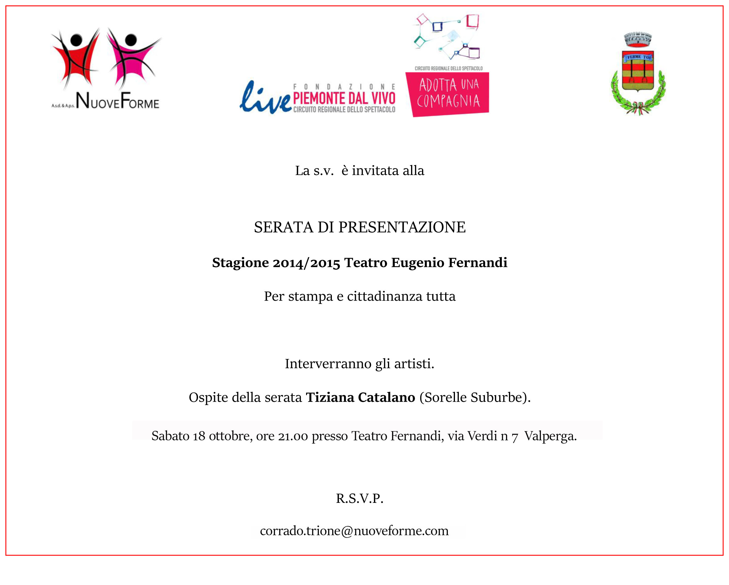 La nuova stagione Teatrale che si terrà al teatro "Eugenio Fernandi" di Valperga, verrà presentata Sabato 18 Ottobre alle ore 21,00 presso lo stesso teatro.