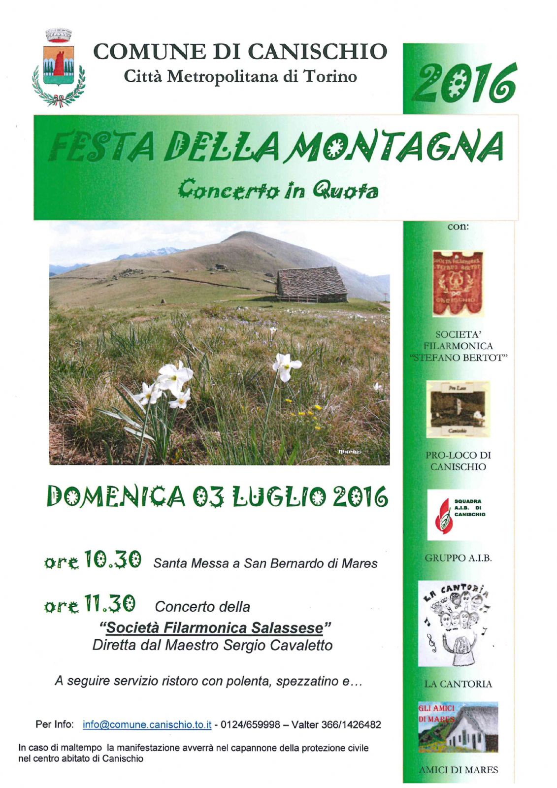 Il Comune di Canischio in collaborazione con la Proloco organizzano