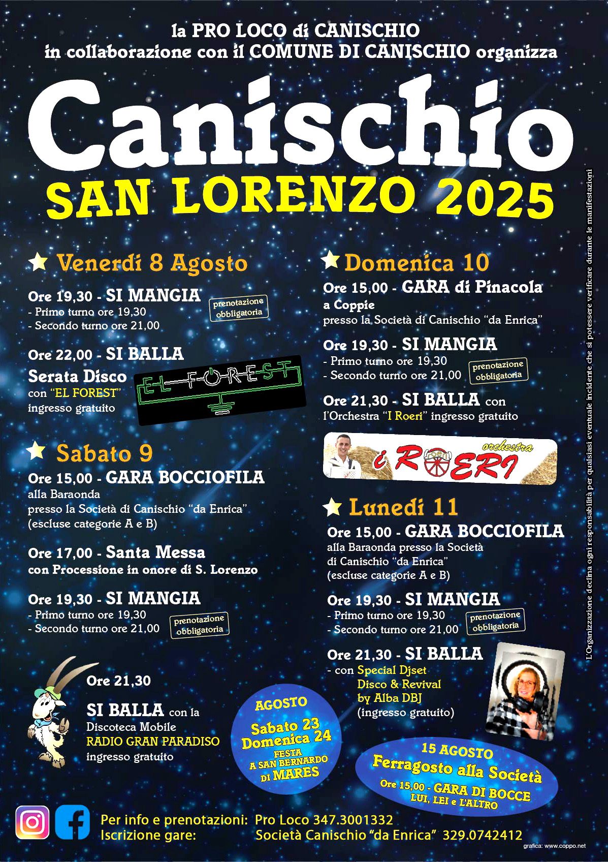 Serate di buona musica e buon cibo in compagnia della PRO LOCO DI CANISCHIO!