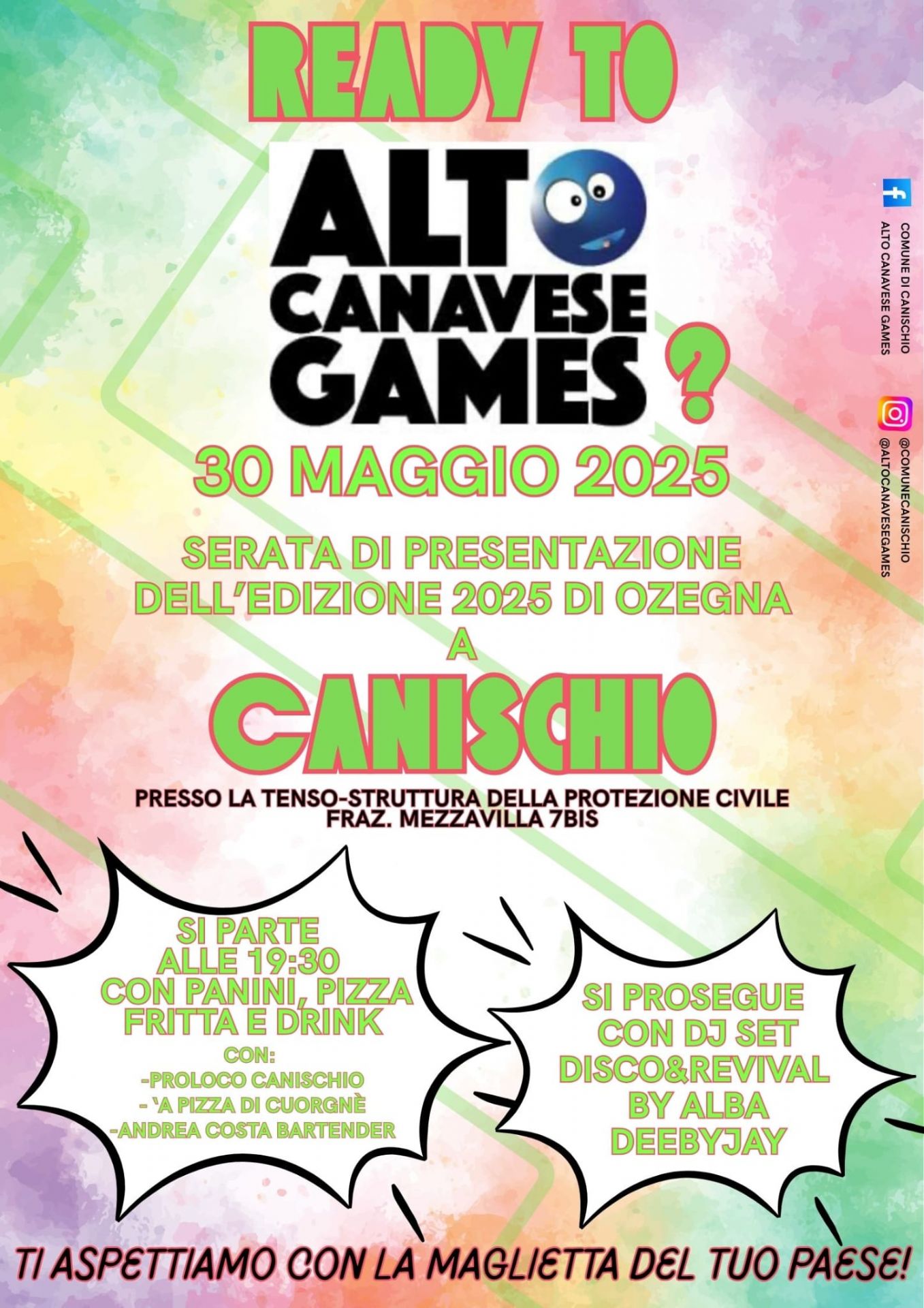 Serata con intrattenimento musicale e "street food" per accompagnare la presentazione dell'edizione 2025 degli Alto Canavese Games, che si terranno il 13-14-15 giugno ad Ozegna.