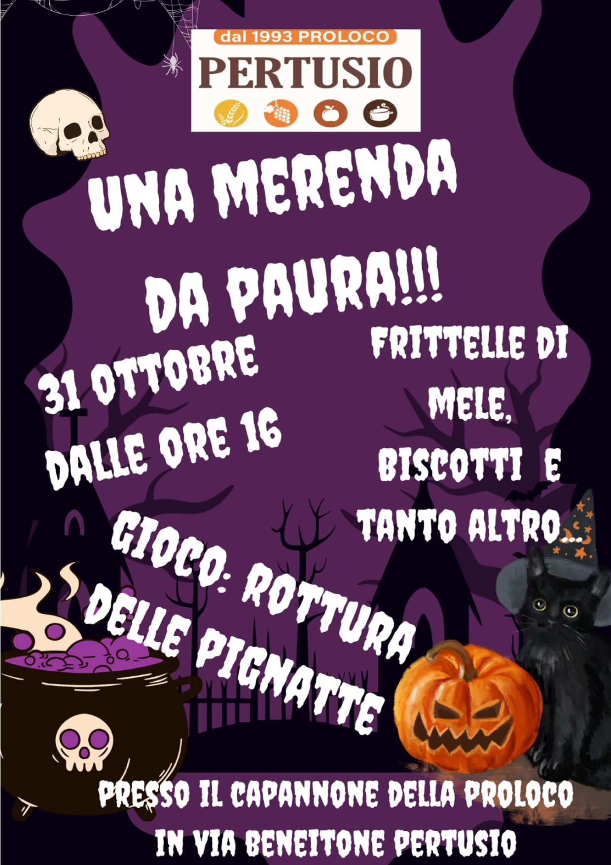 31 ottobre 2024 dalle ore 16.00 presso il Capannone della Proloco in Via Beneitone a Pertusio