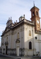 medaglioni sulla vita del santo, del Siffredi. Al centro del tempio si può osservare il basamento dell'antico pilone. La facciata venne rifatta nel 1925 su disegno dell'architetto Gallo in stile classico e monumentale.
